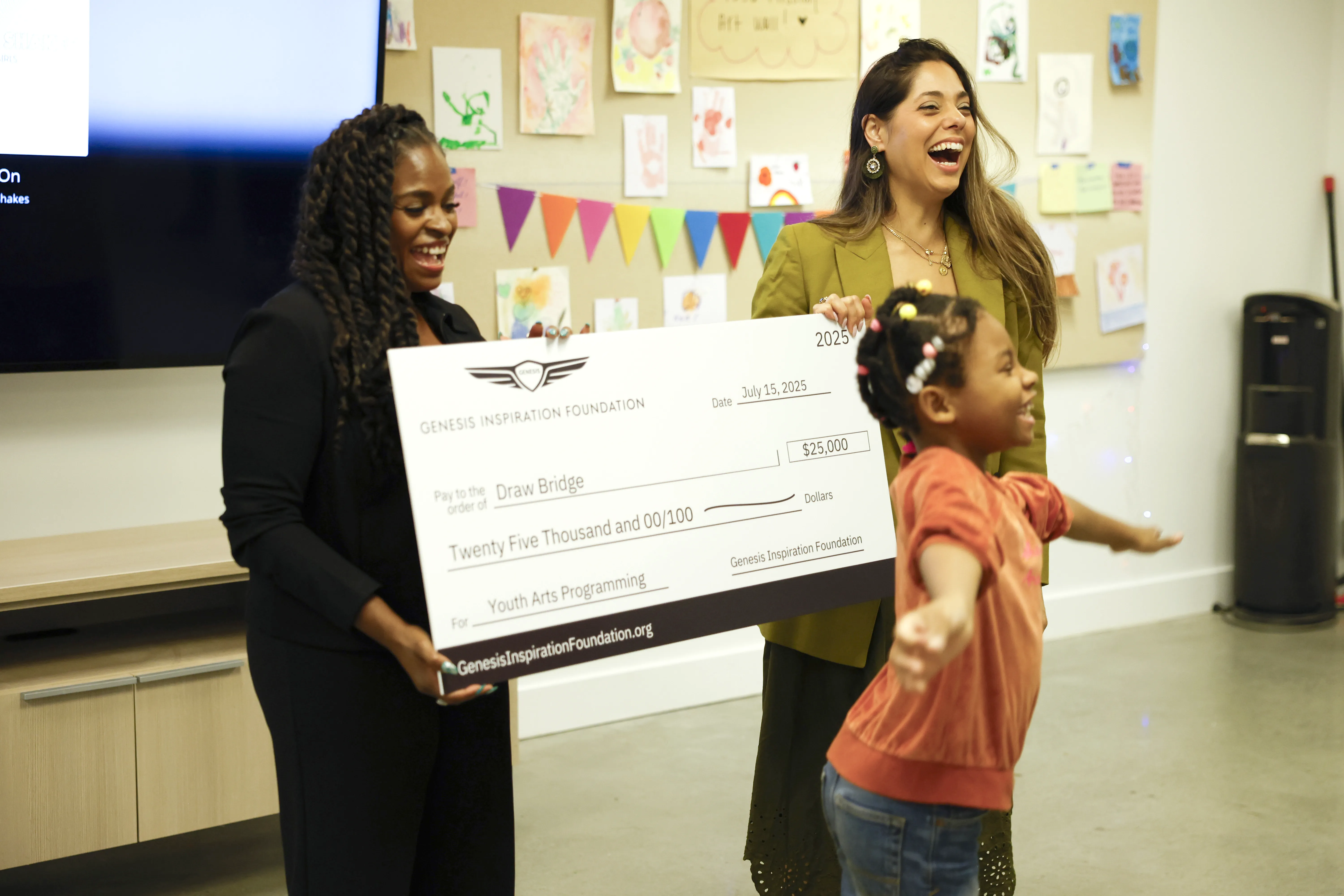 In 2025, the Genesis Inspiration Foundation visited DrawBridge to see our programs firsthand, and presented us with a $25,000 grant to continue our work.